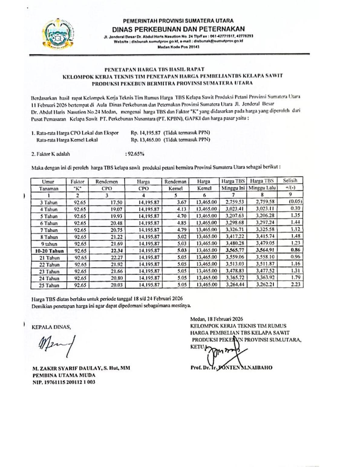 Harga TBS Periode Tanggal 18 s/d 24 Februari 2026! Alami Kenaikan