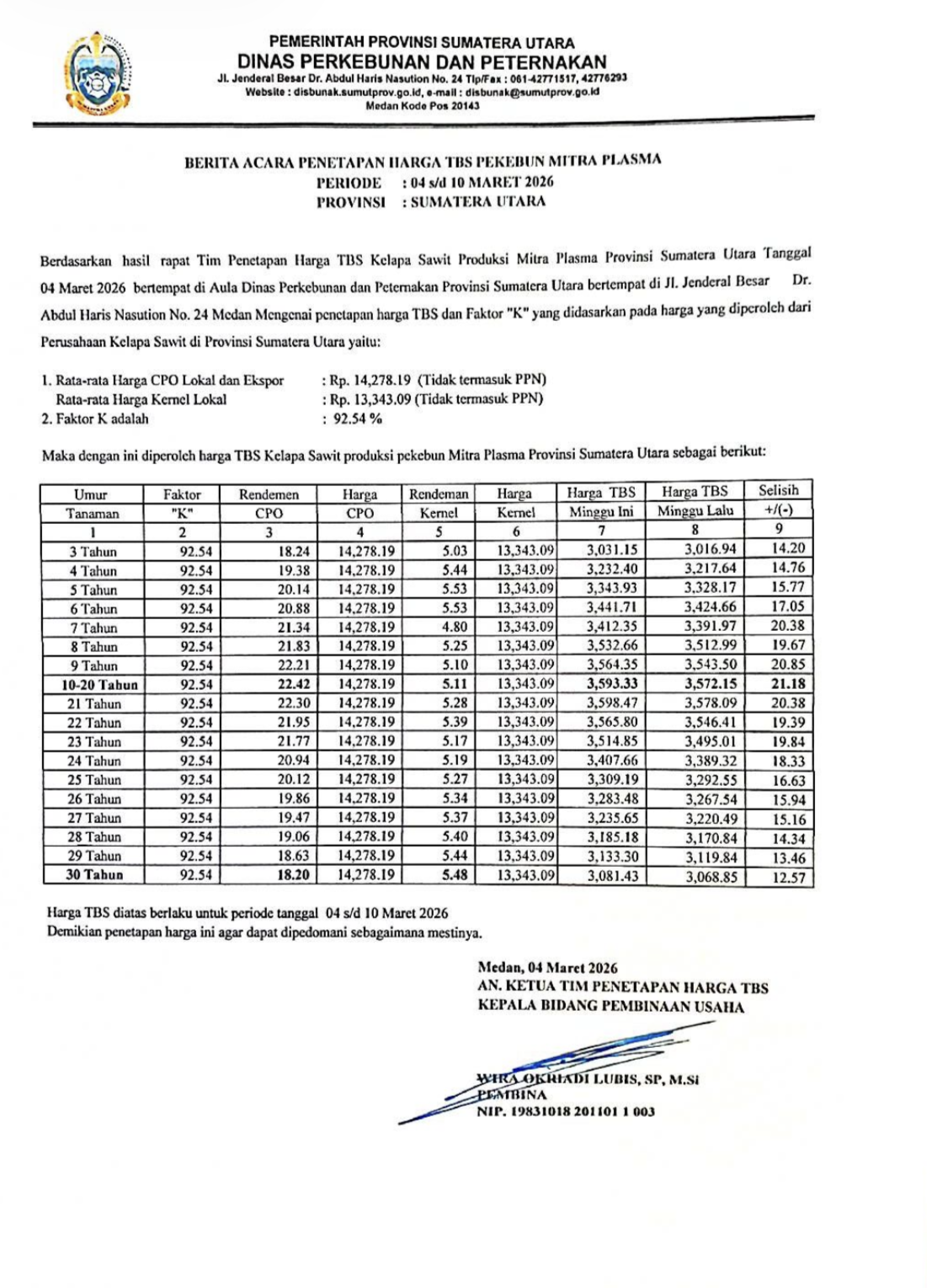 Harga TBS Periode Tanggal 04 s/d 10 Maret 2026! Alami Kenaikan
